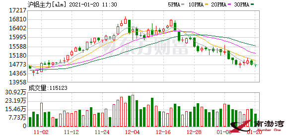 1月20日,國內期貨市場上滬鋁主力合約再度走跌,早盤收于14725元/噸,盤中最低至14635元/噸。2020年12月末至今,該主力合約最大跌幅已達到11%。